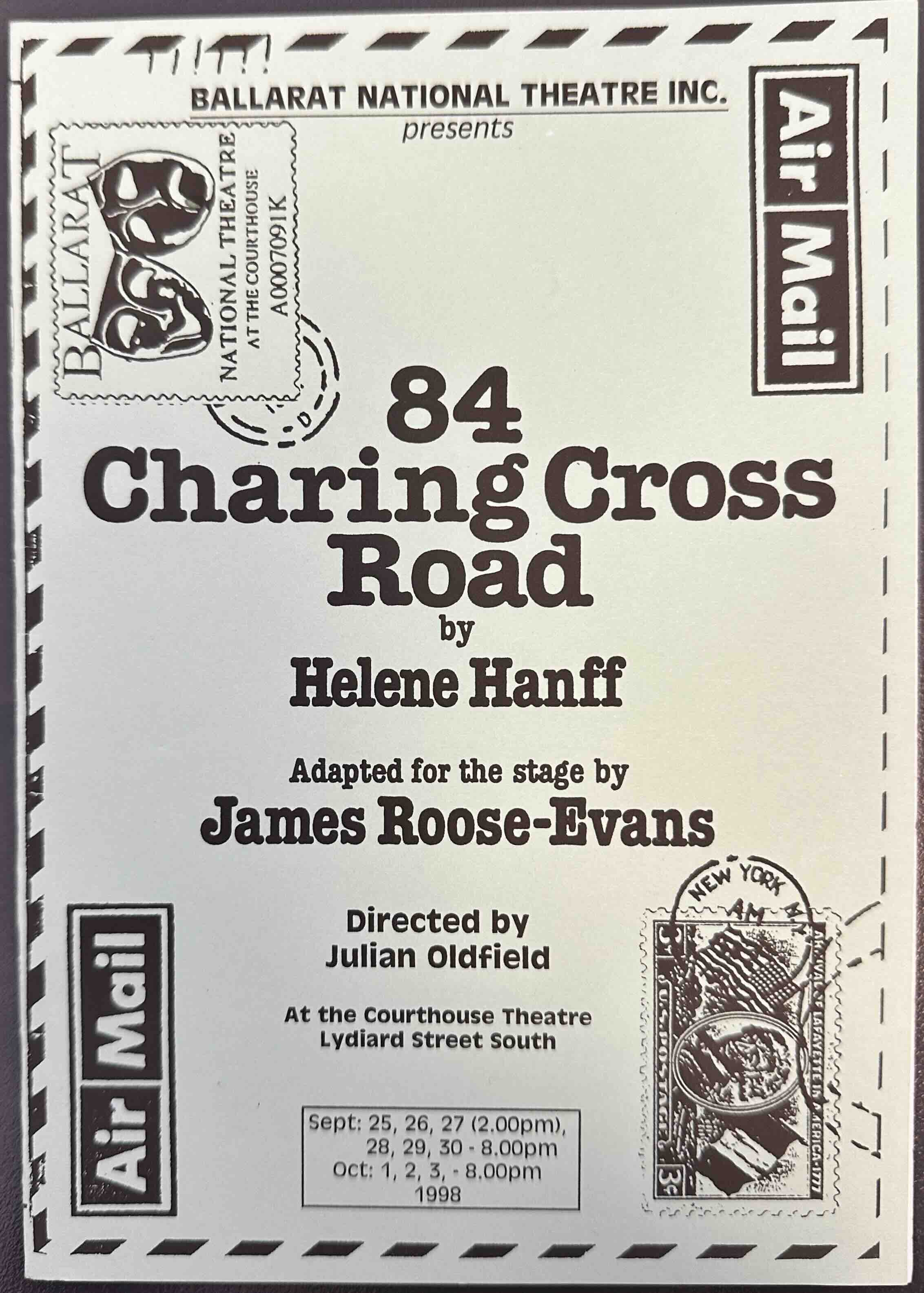 This wonderful show is a dramatization of business letters between a young struggling writer in New York and an antiquarian book store in London. In a sense, these are also love letters. They are about the love of good literature.