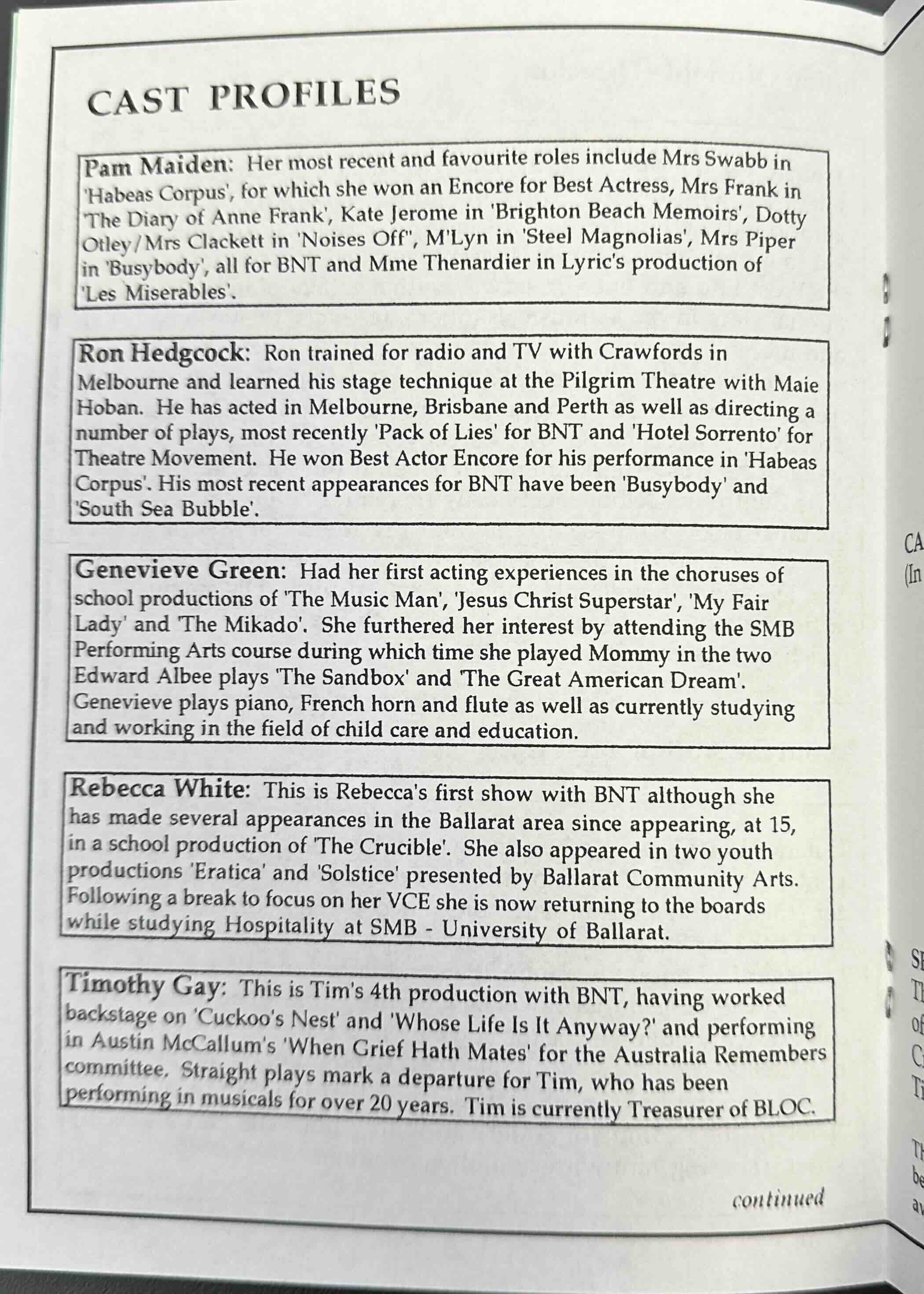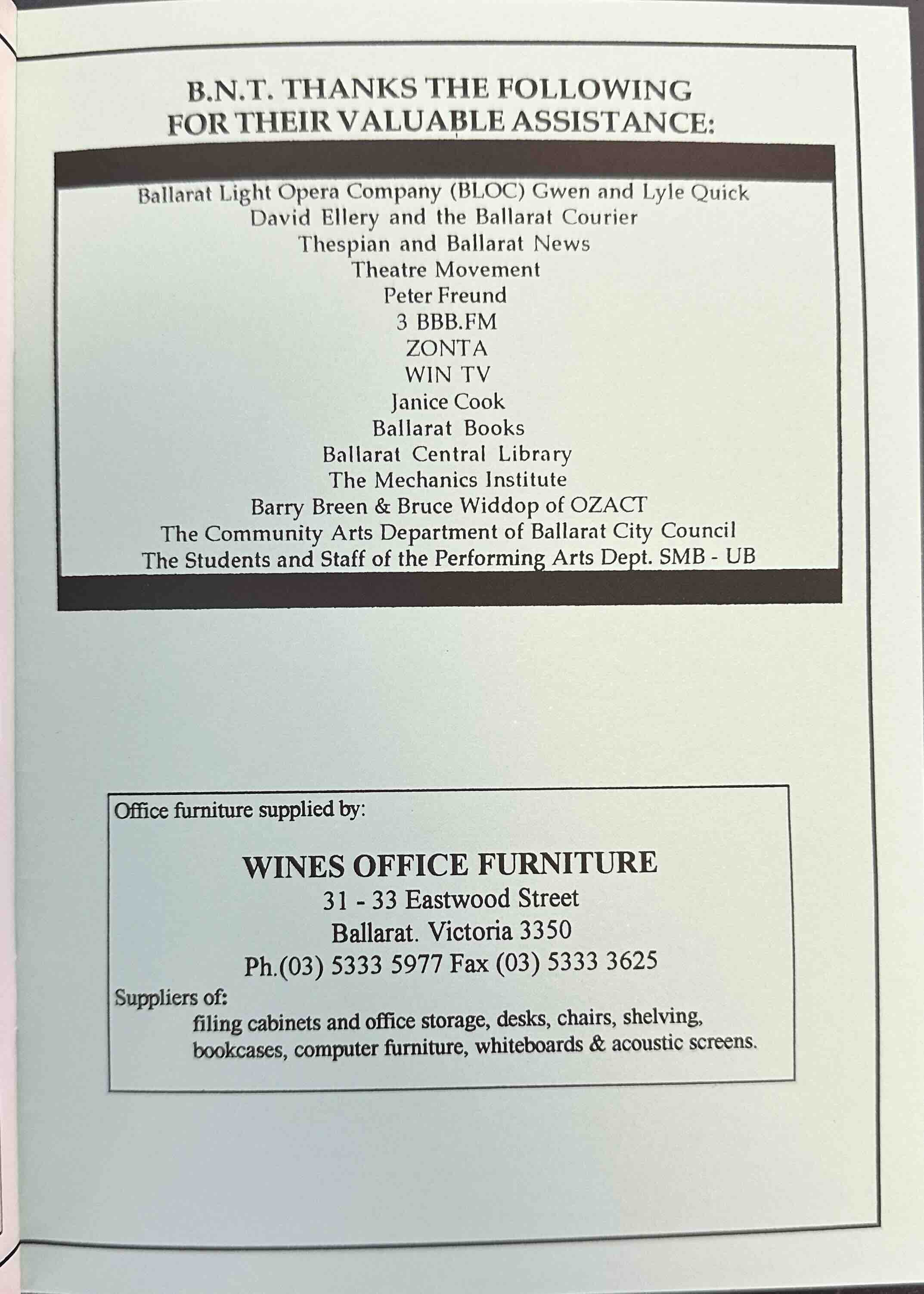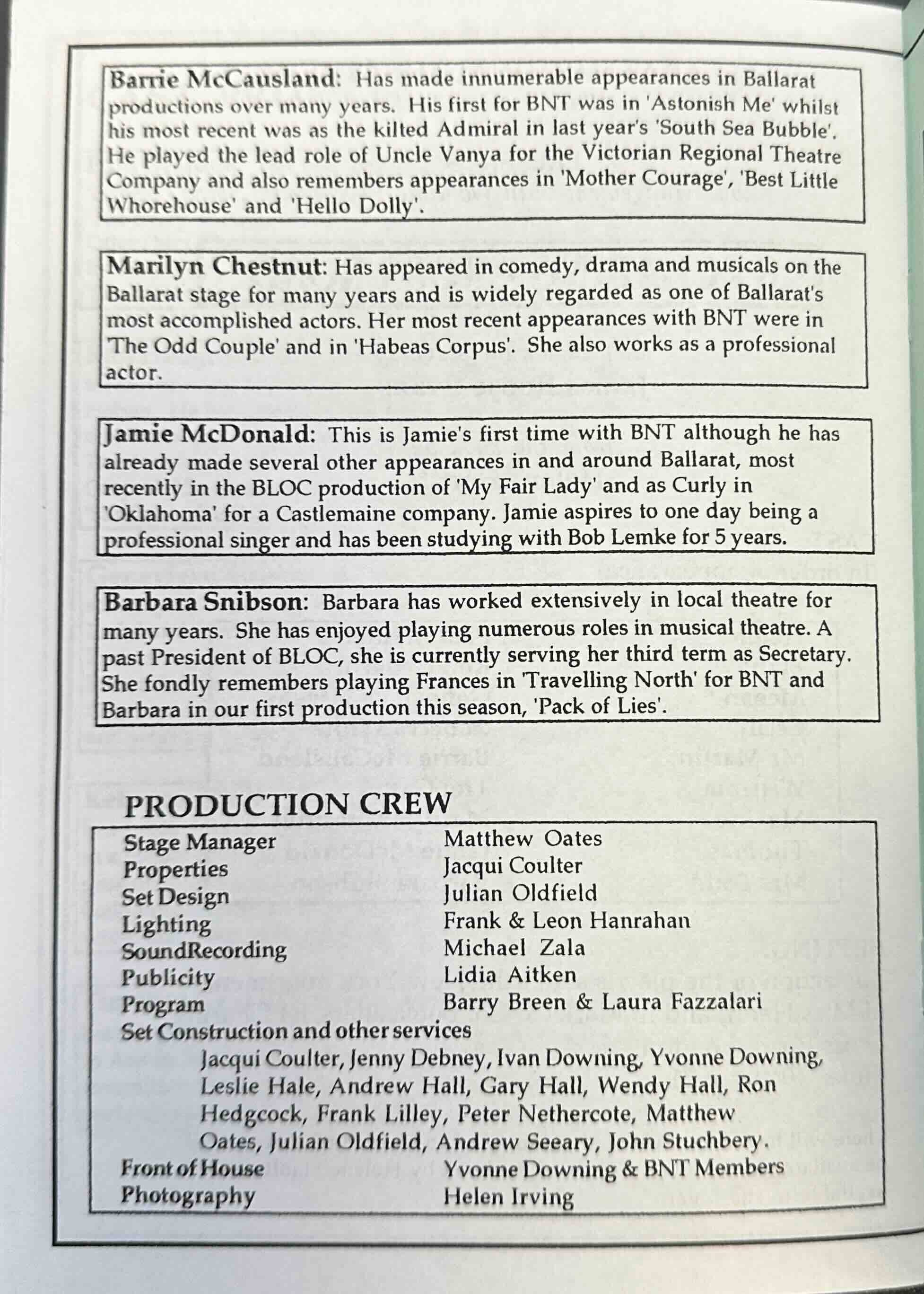 and other servicesJacqui Coulter, Jenny Debney, Ivan Downing, Yvonne Downing, Leslie Hale, Andrew Hall, Gary Hall, Wendy Hall, Ron Hedgcock, Frank Lilley, Peter Nethercote, Matthew Oates, Julian Oldfield, Andrew Seeary, John Stuchbery -