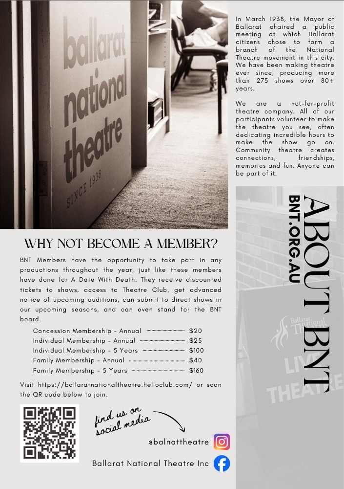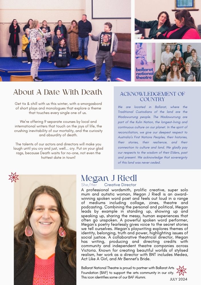 Laura Hudson is a creative artist based in Ballarat. She’s a songwriter, singer, dancer, actor and now director. Laura has worked both on-stage and off for BNT productions over the past ten years. She has also worked with BLOC and Lyric.
