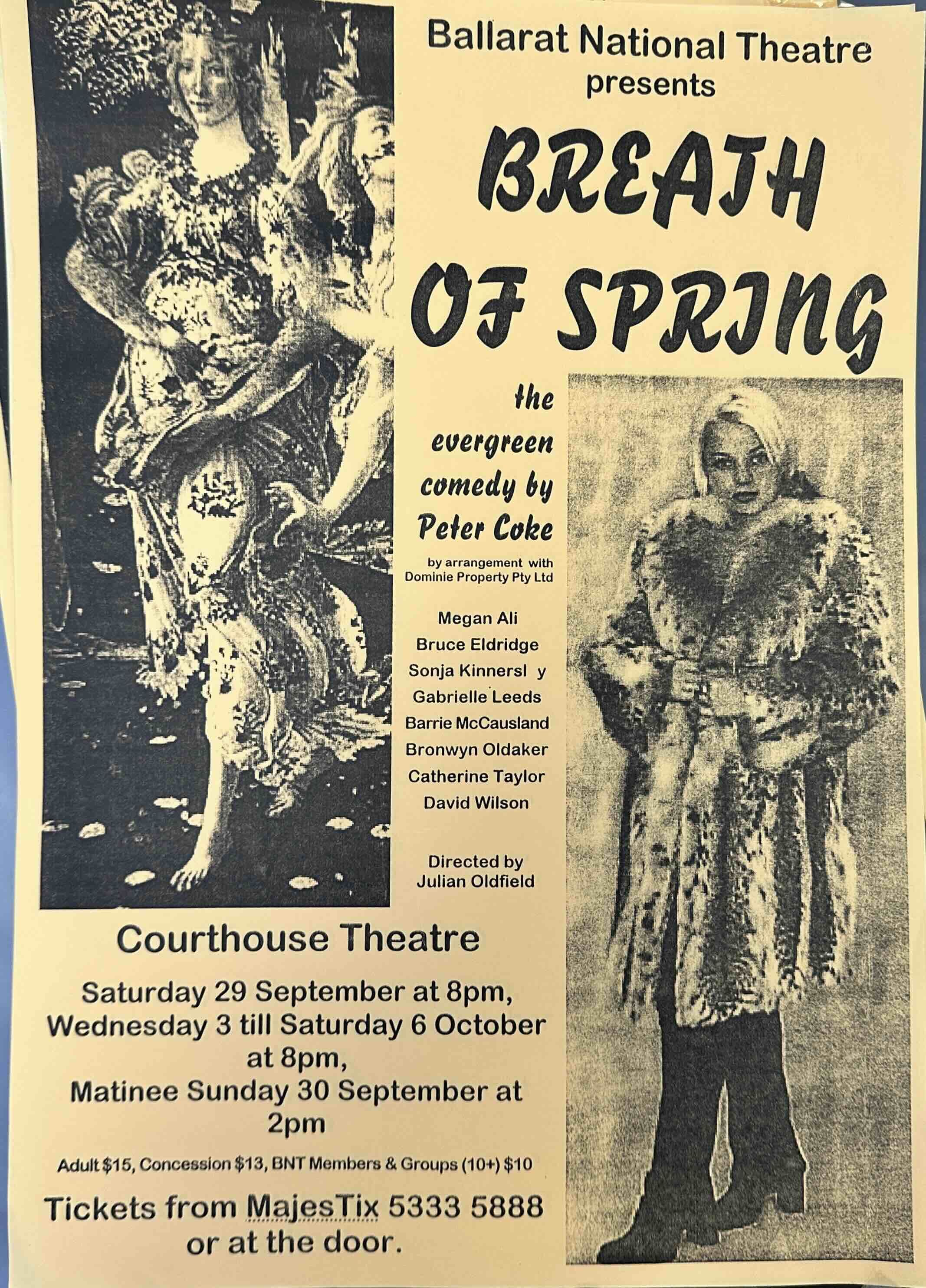 Ah, but will it? It is a frivolous piece of nonsense, funny and most enjoyable, so take along a friend and enjoy A Breath of Spring.