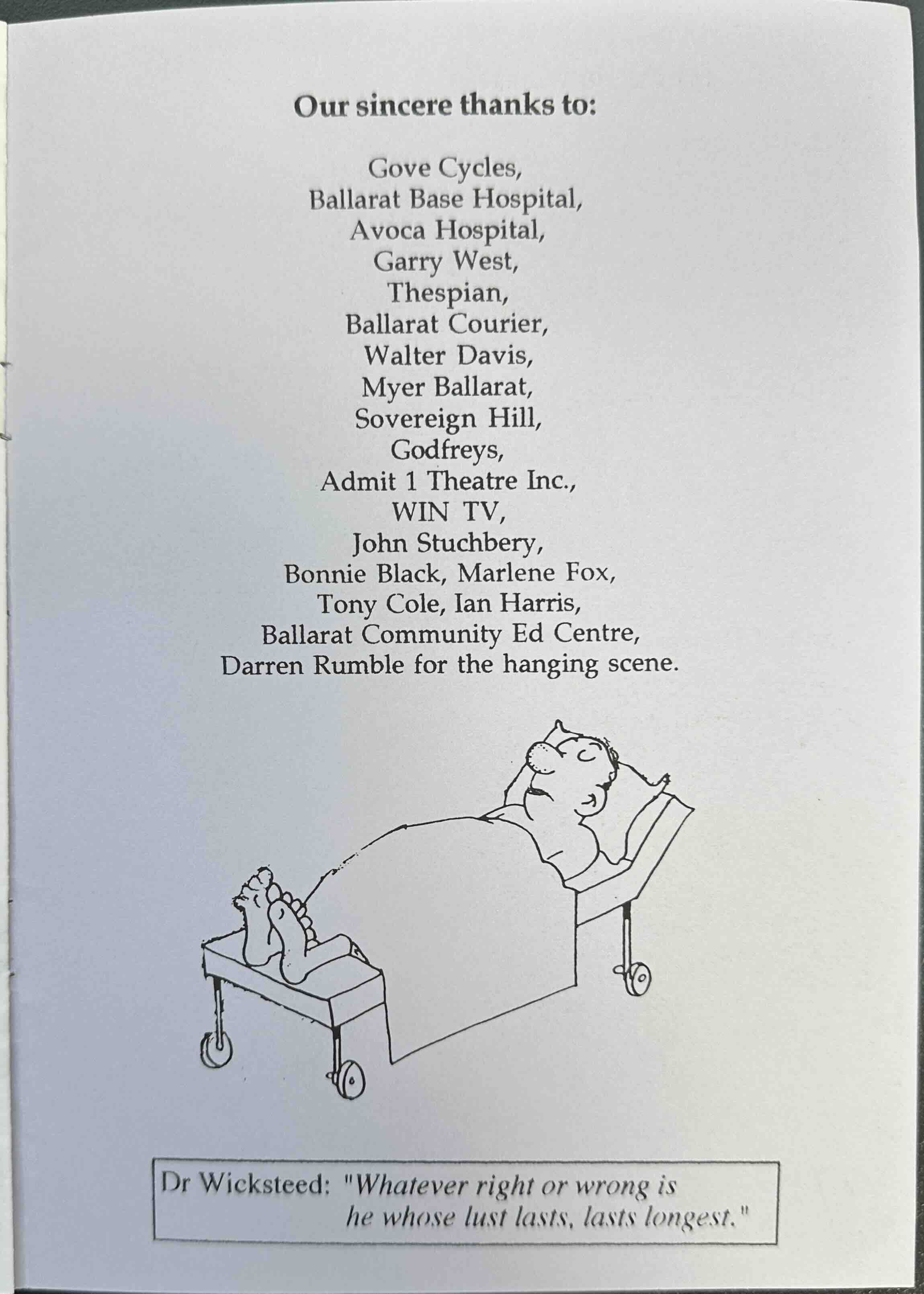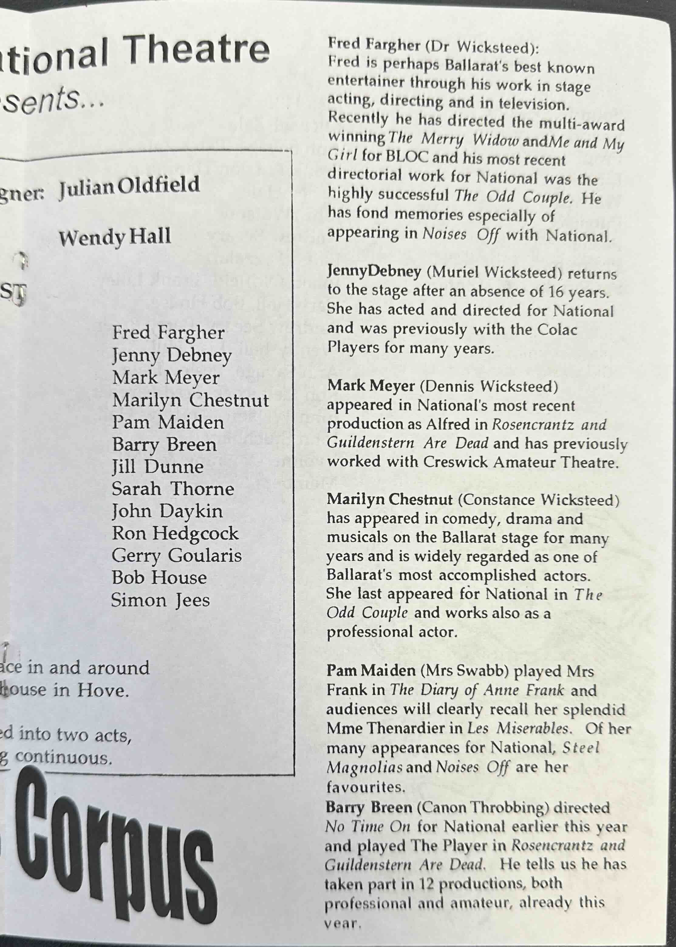 In Melbourne he was Program Manager for the Victoria Arts Centre before coming to live in Ballarat, where he continues his long and active contribution to theatre.