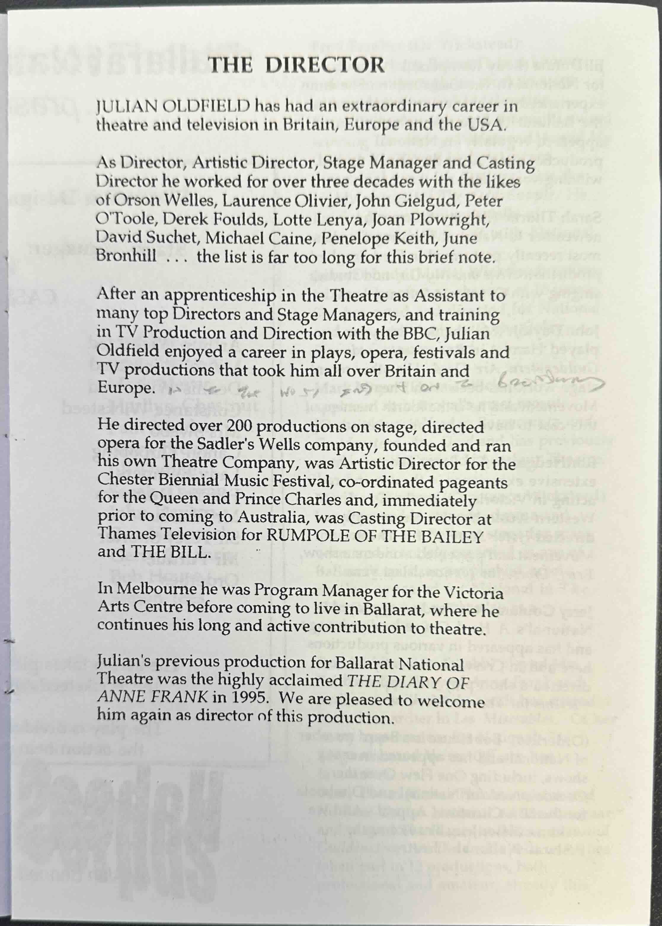 JULIAN OLDFIELD has had an extraordinary career in theatre and television in Britain, Europe and the USA.