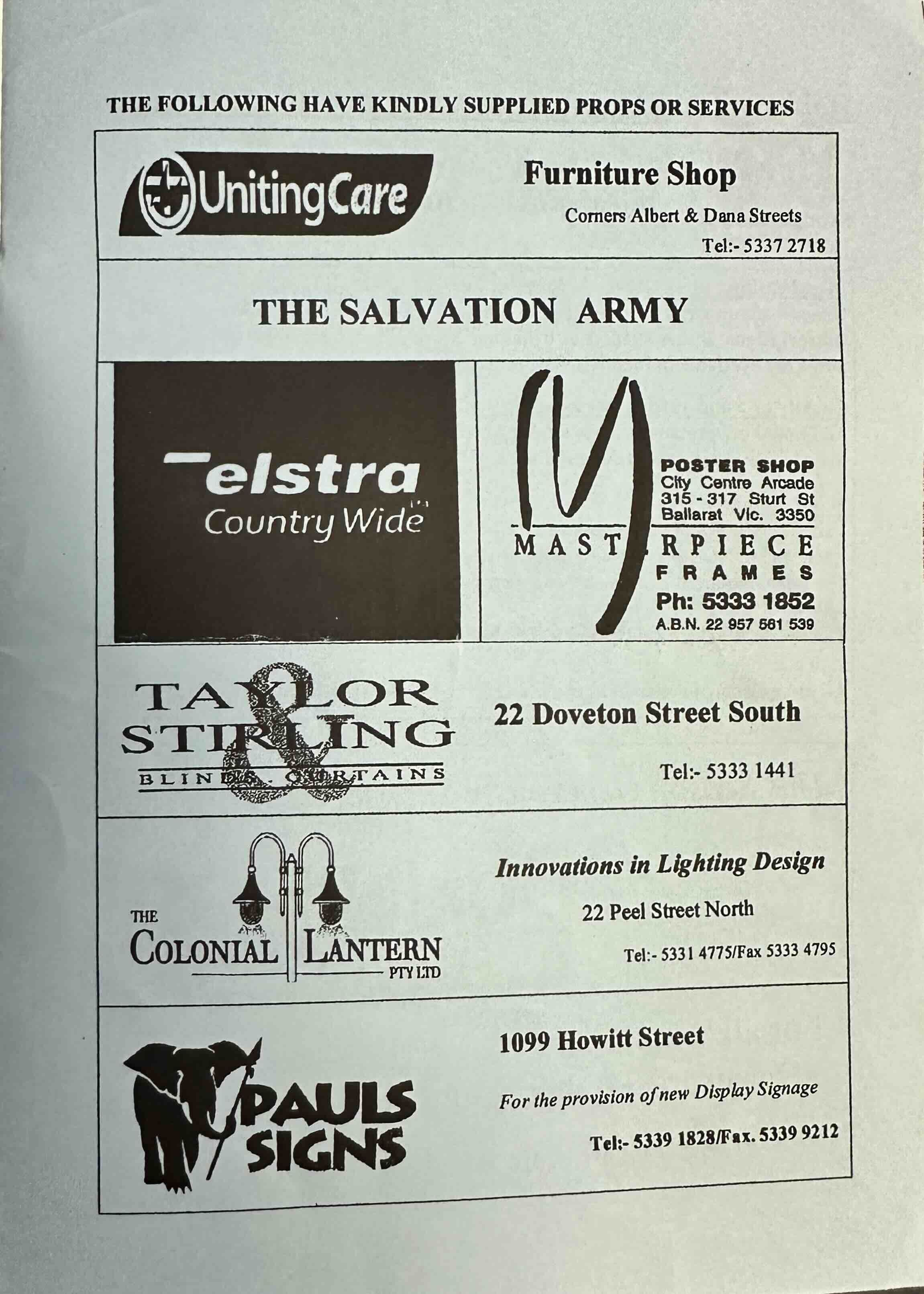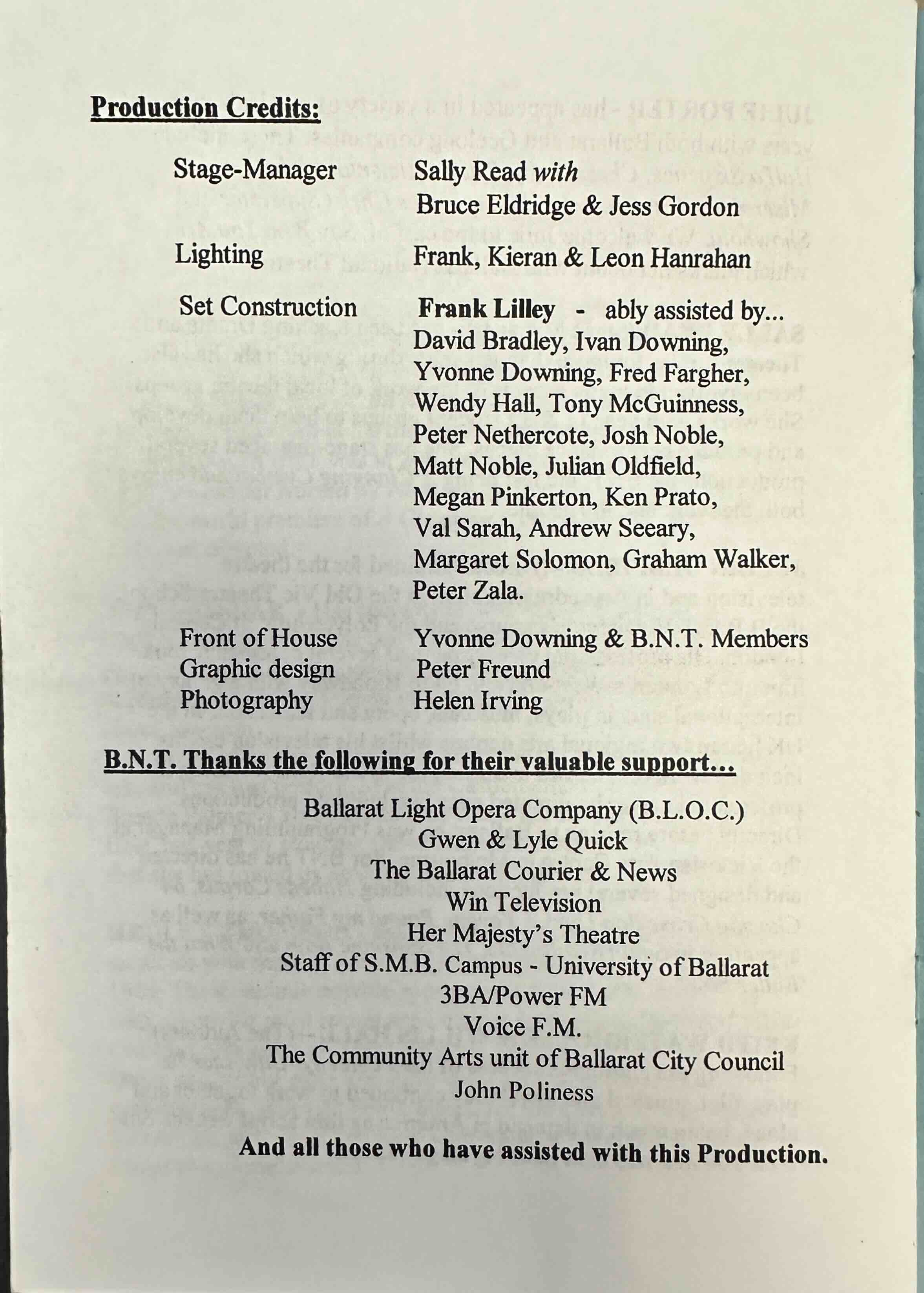 Frank Lilley - ably assisted by... David Bradley, Ivan & Yvonne Downing, Fred Fargher, Wendy Hall, Tony McGuinness, Peter Nethercote, Josh & Matt Noble, Julian Oldfield, Megan Pinkerton, Ken Prato, Val Sarah, Andrew Seeary, Margaret Solomon, Graham Walker, Peter Zala.