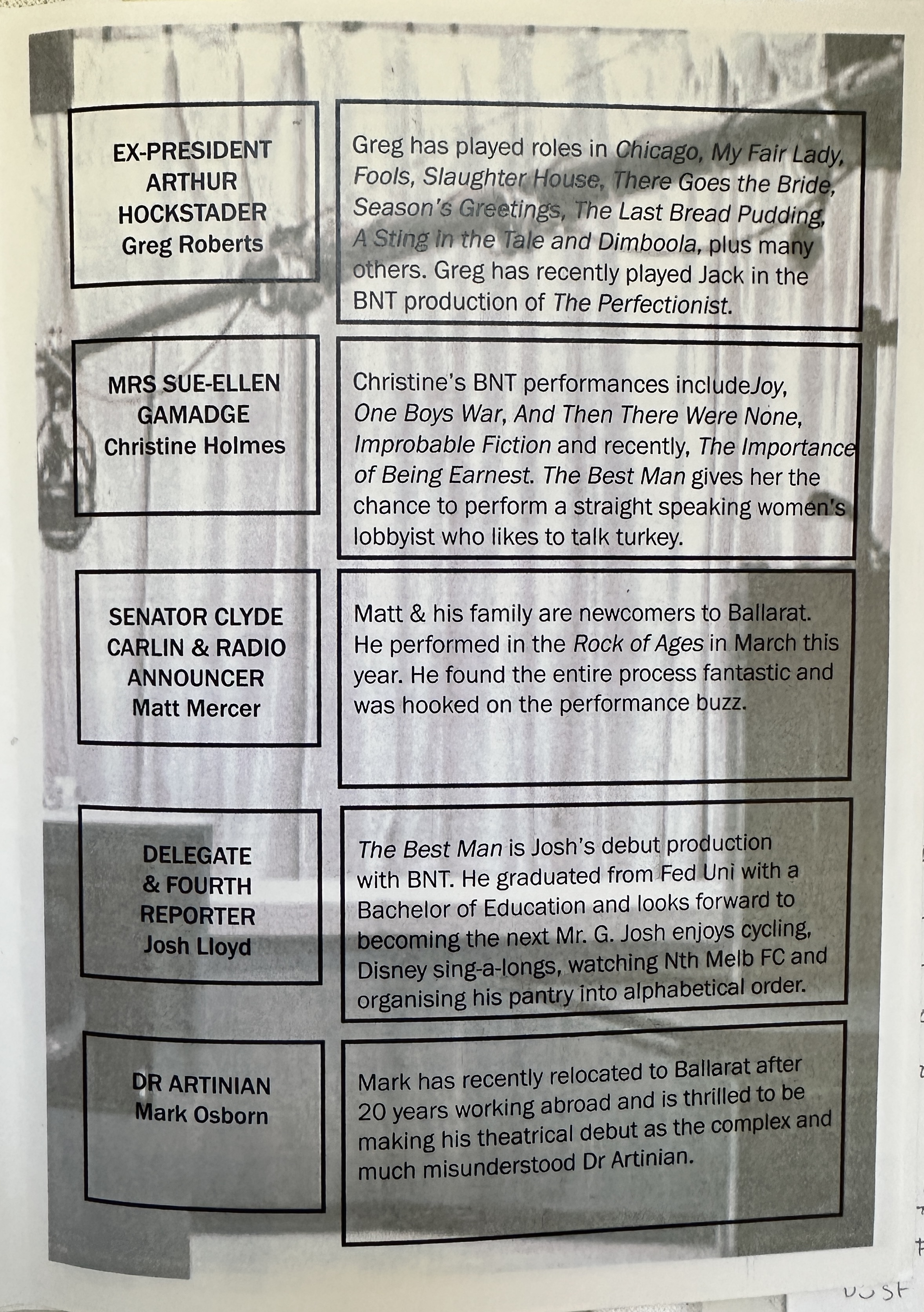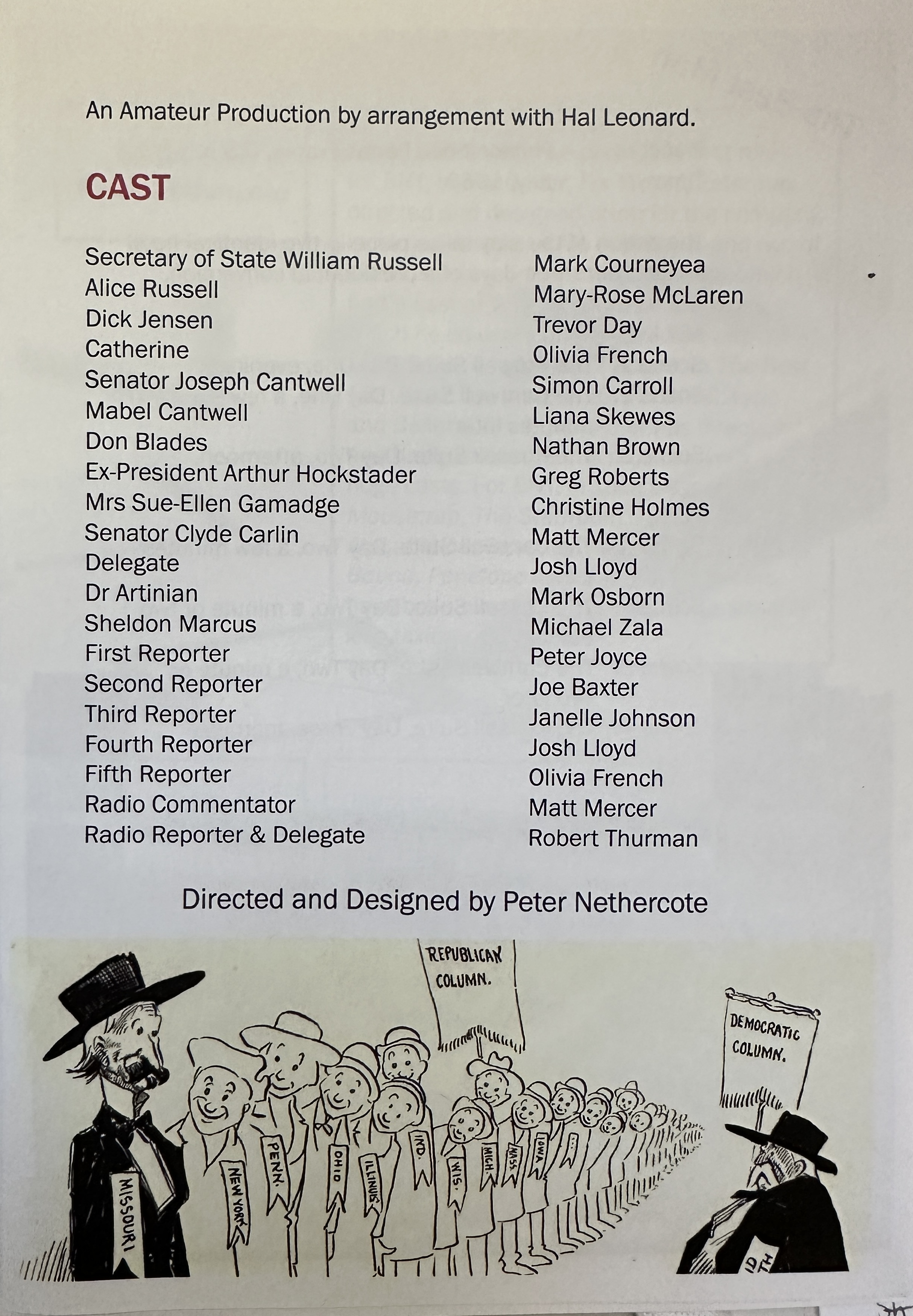 Ballarat National Theatre selected this play twelve months ago to coincide with the protracted USA primaries and presidential elections precisely because its subject – the plotting and shenanigans behind the staging of a party’s convention would have so much relevance.