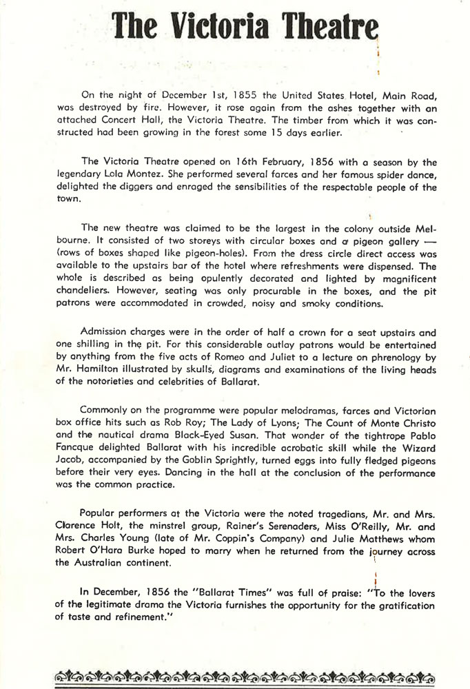 Venue: The Victoria Theatre, Sovereign Hill