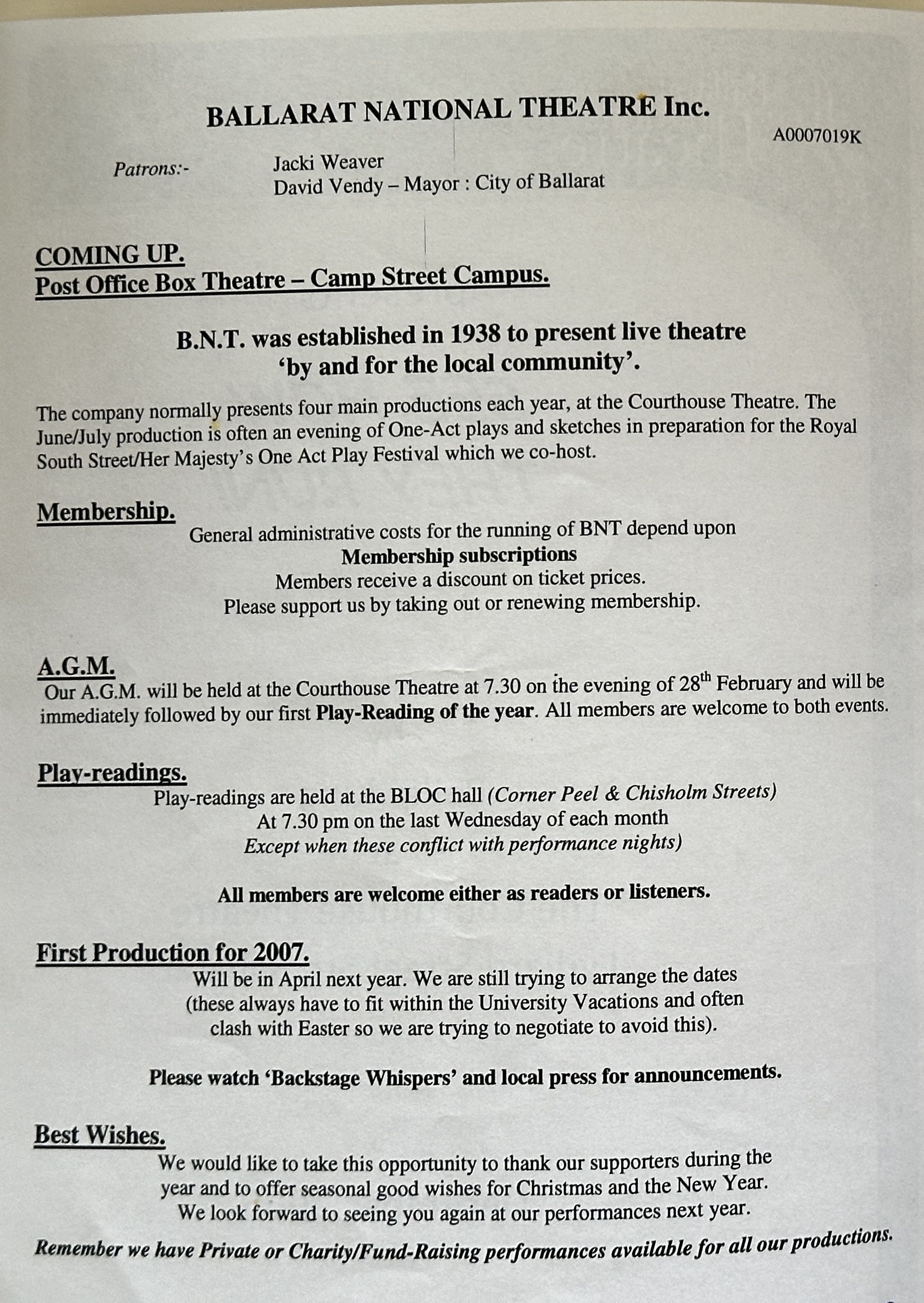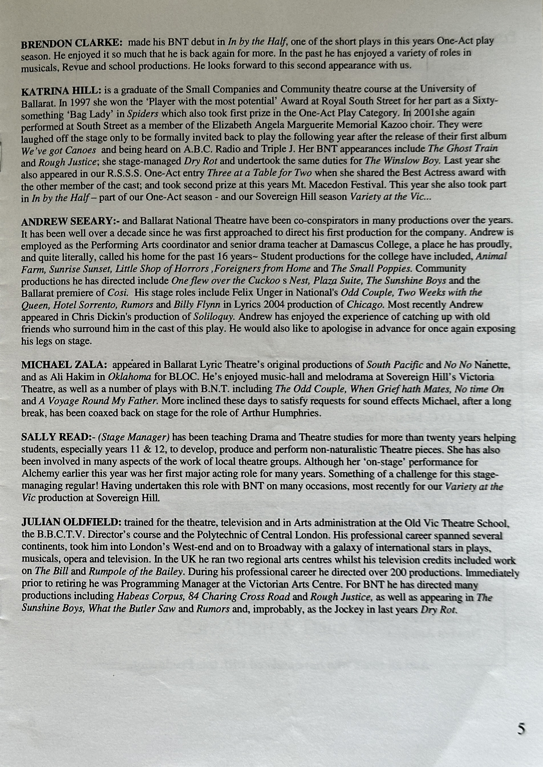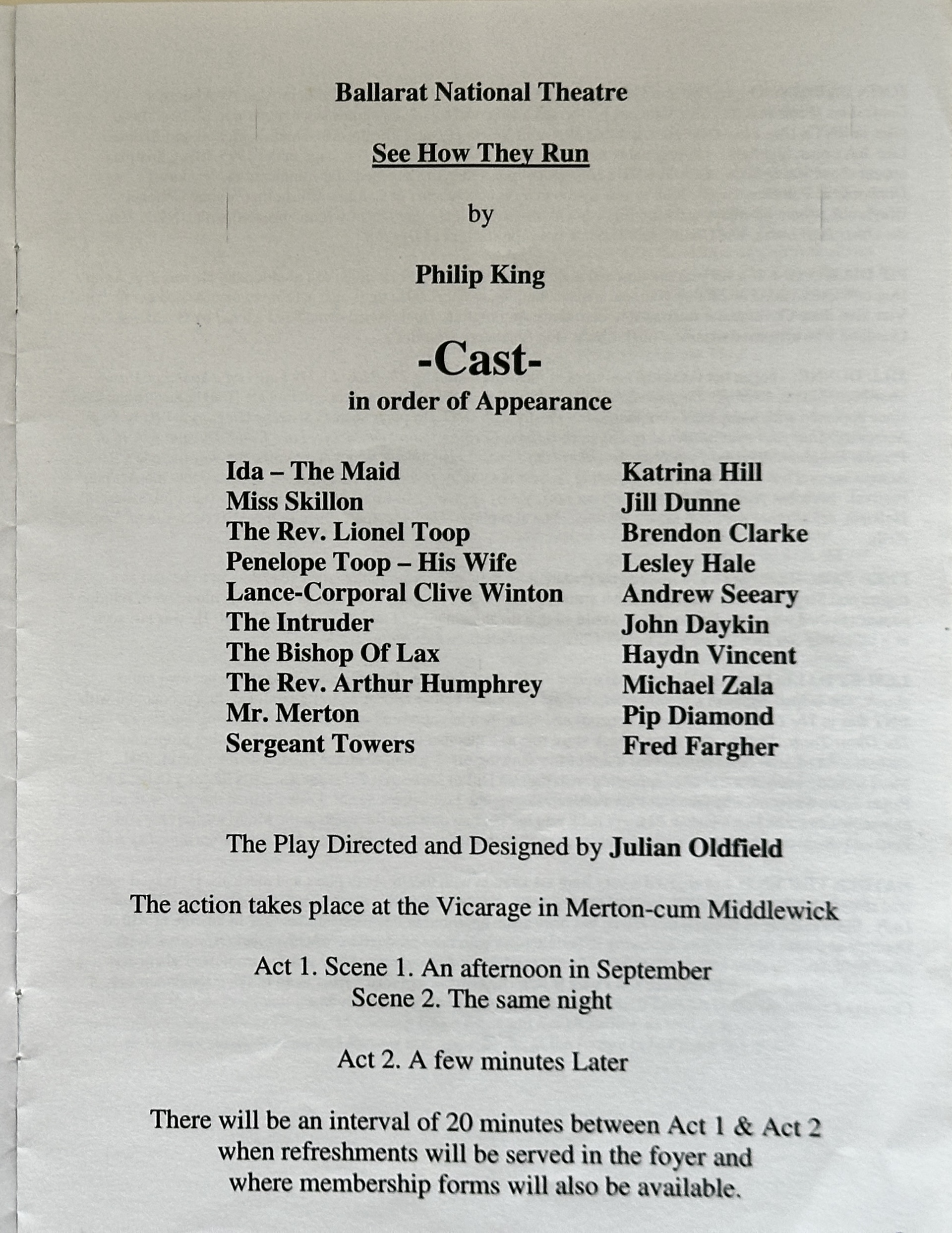 Ballarat's production is directed and designed. by Julian Oldfield, who brings to it his wide experience in English theatre.
