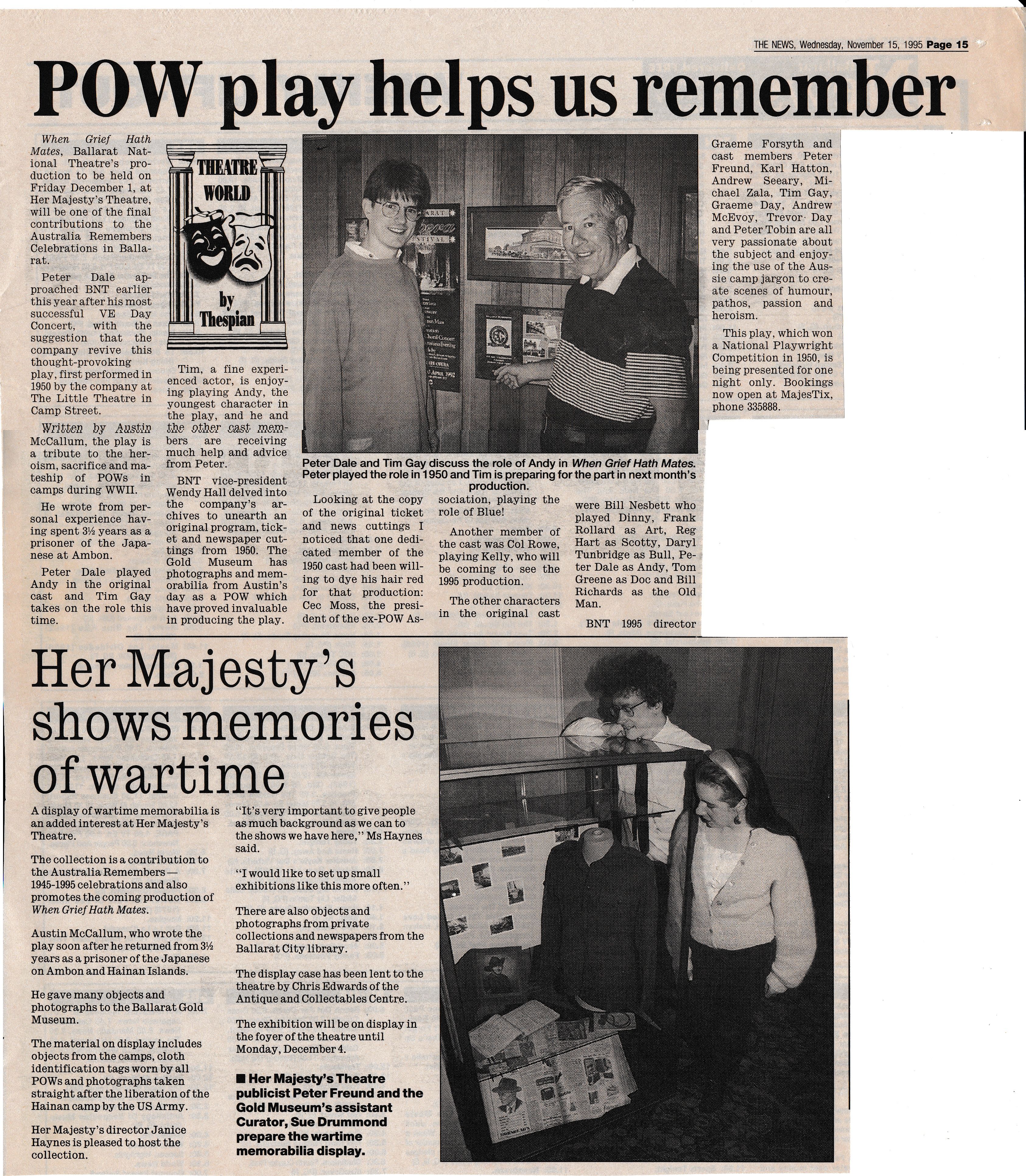 1995  | When Grief Hath Mates  | Newspaper articles added to the production page  | Read more |