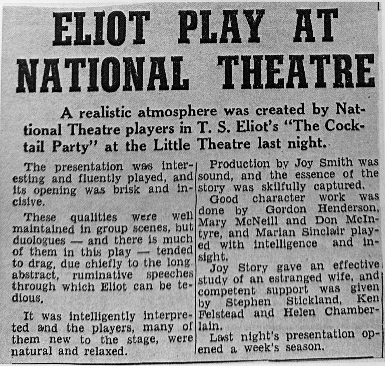 Some interesting items in this update include information about productions we have previously had no information on, including the 1994 production of Steel Magnolias. There are also some entertaining reviews of the one-act play Fumed Oak, which was staged in 1950. The media added to the production includes potent Letters To The Editor from Christian members of the community, outraged by the production, as well as people staunchly defending the production. The play was presented at the Royal South Street Society one-act play festival and won second place.