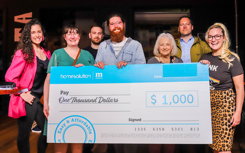 At our EOY Theatre Party Metricon presented us with a fun giant cheque so we got a group photo to say thank you!