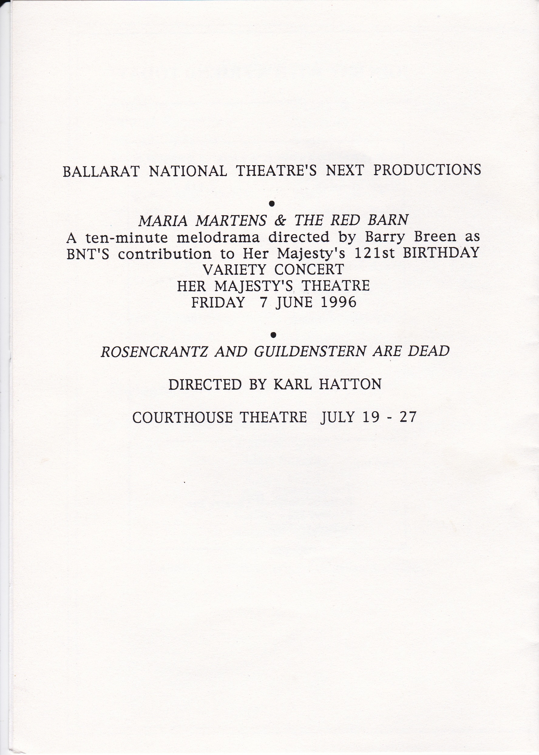 • Her Majesty's 121st BIRTHDAY VARIETY CONCERT
