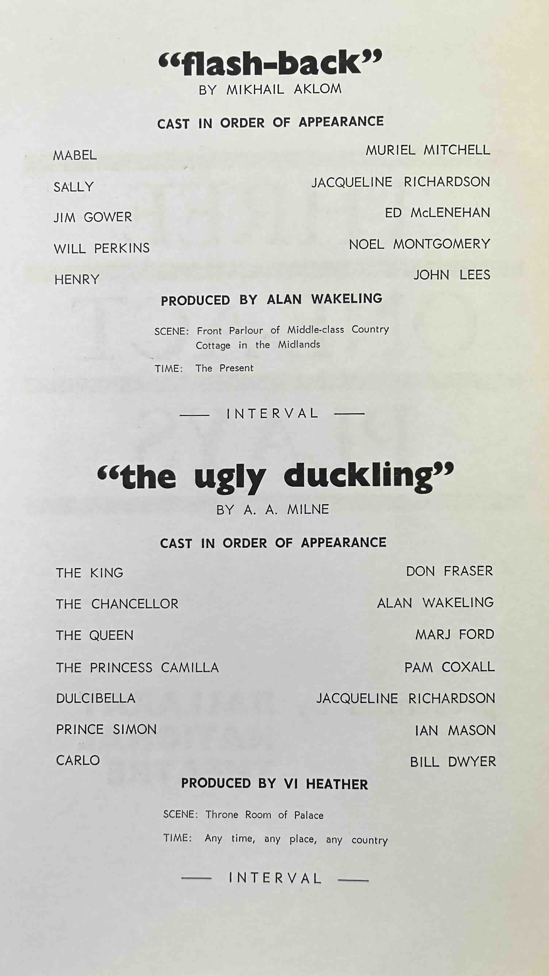 Playwright: Mikhail Aklom, A. A. Milne, Winifred Phelps
