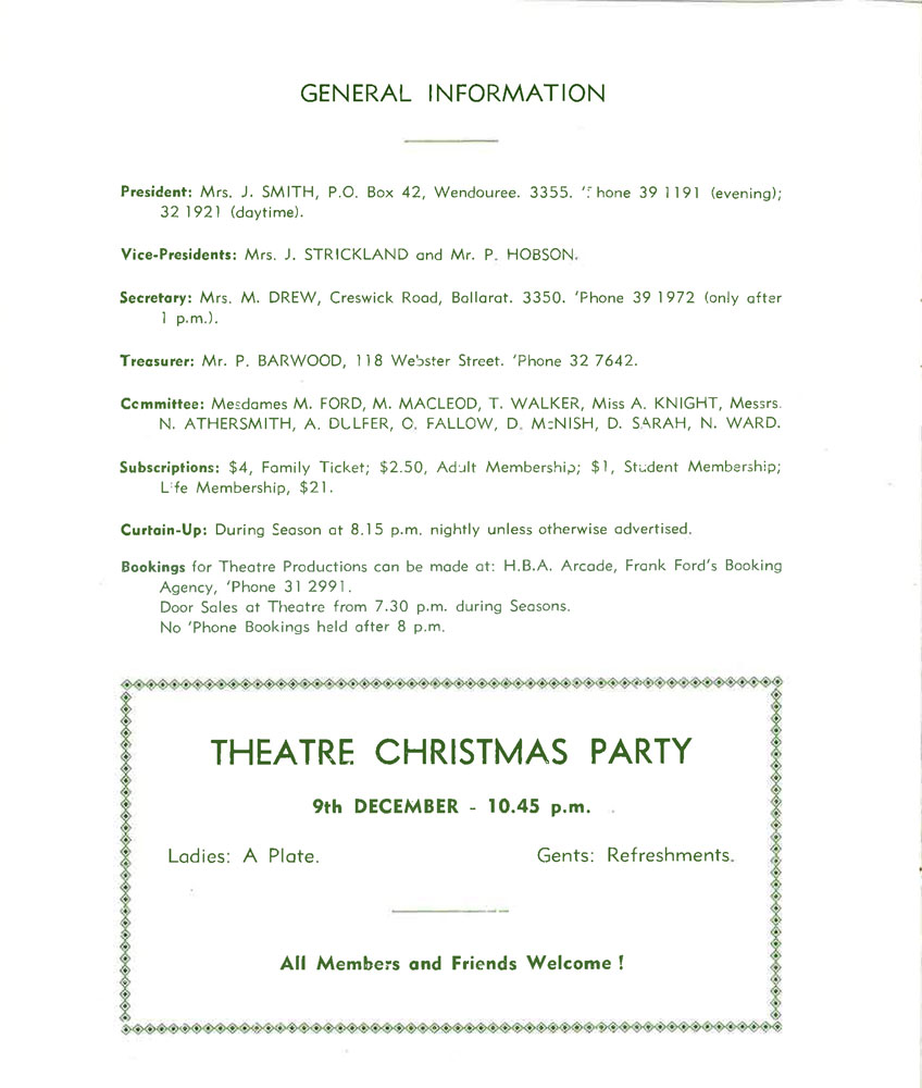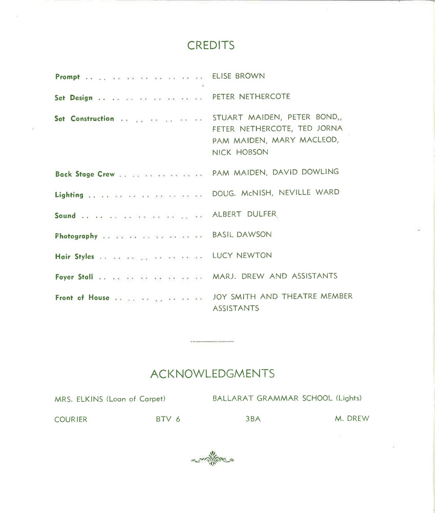 Set ConstructionStuart Maiden, Peter Bond, Peter Nethercote, Ted Jorna, Pam Maiden, Mary Macleod, Nick Hobson