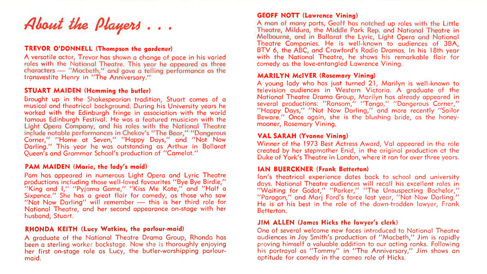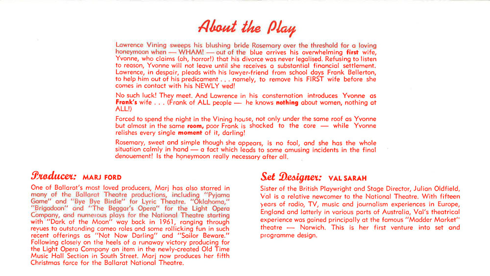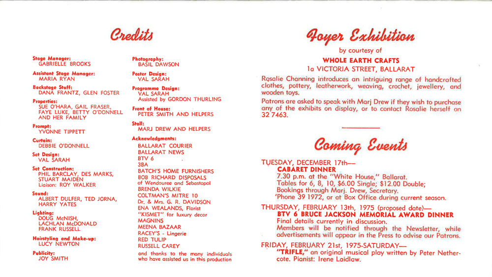 Programme DesignVal Sarah, assisted by Gordon Thurling