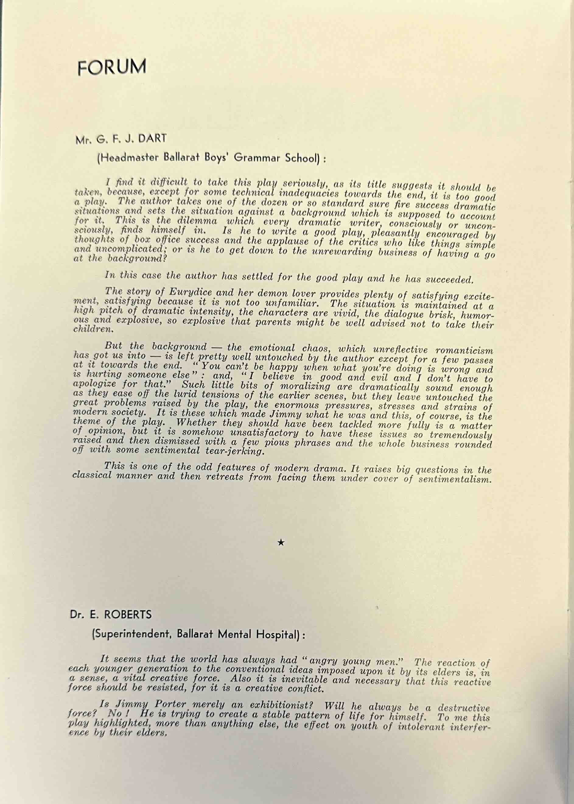 The play was received favourably in the theatre community, becoming an enormous commercial success, transferring to the West End and Broadway, and even touring to Moscow. It is credited with turning Osborne from a struggling playwright into a wealthy and famous personality, and also won him the Evening Standard Drama Award as the most promising playwright of 1956. The play was adapted into a motion picture of the same name by Tony Richardson, starring Richard Burton and Mary Ure, which was released in 1959. Film production credited circa 1958.
