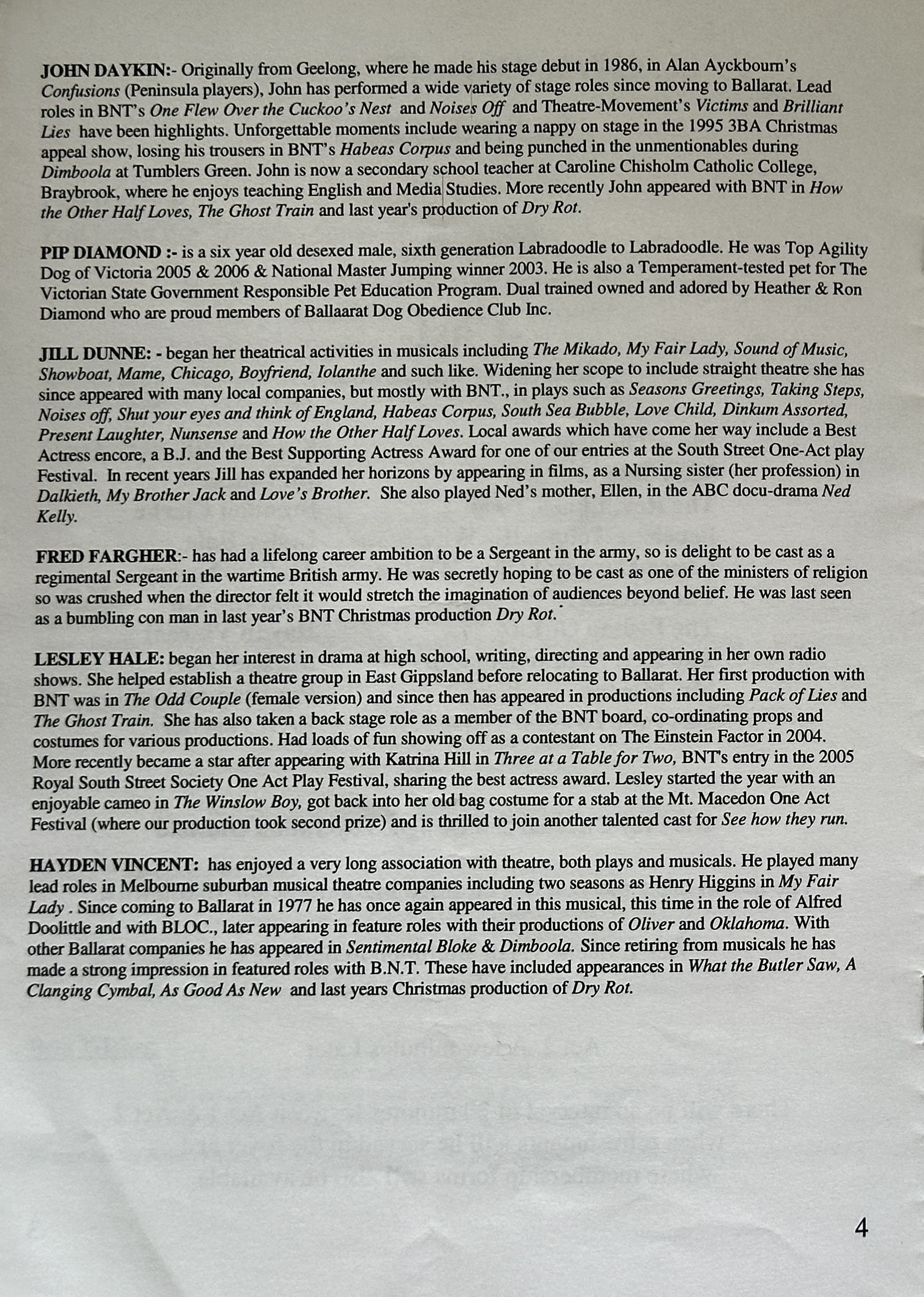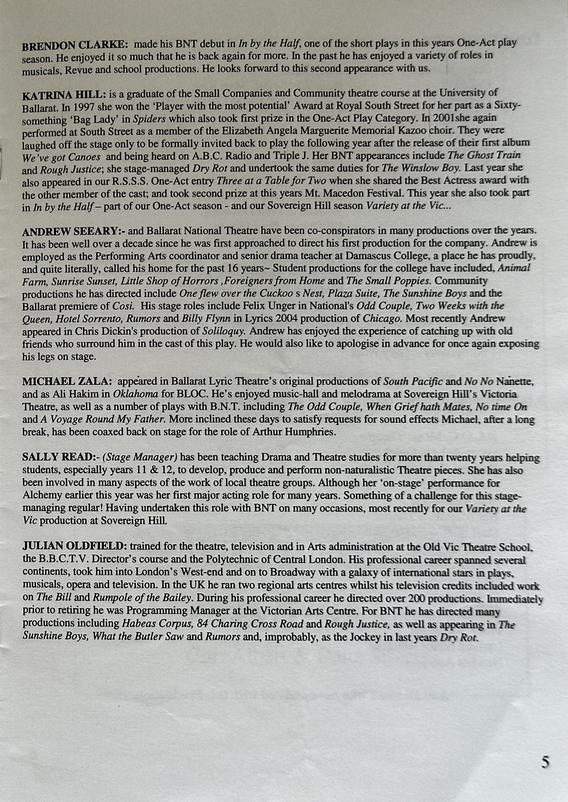 Ballarat's production is directed and designed. by Julian Oldfield, who brings to it his wide experience in English theatre.