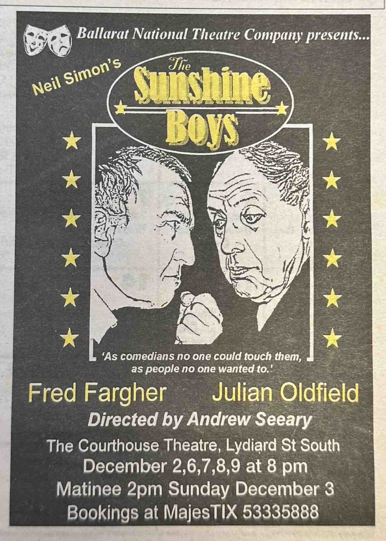 Thank you to Andrew Seeary and Ballarat National Theatre for staging The Sunshine Boys. Pure entertainment from beginning to end.