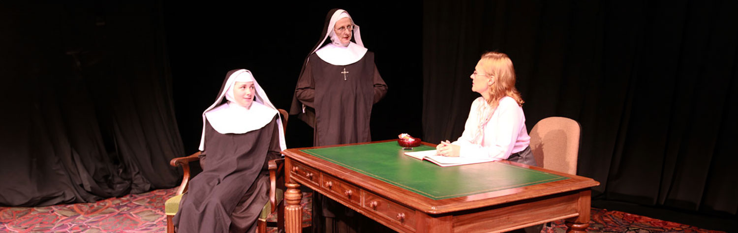 This award winning Broadway play gives each performer wonderful opportunities, the characters are emotionally complex, the language ranges from the everyday to the poetic and the mood constantly shifts, from gentle humor to harrowing conflict. This trio of actors works well together, complementing and supporting each other's interpretations. Dr Martha Livingstone (Mary-Rose McLaren) begins directly addressing the audience; she is our way in, providing context and connection. Symbolic of the outside world, she is a lapsed Catholic and Atheist. Her views and emerging inner conflicts are expressed clearly, but she is often trapped, literally behind her desk, or as the voice of rationality and science, not always eliciting sympathy. As the contrasting voice of faith, Mother Superior Miriam Ruth, (Pamela Maiden) has passion and strength. In this complex role she uses stillness and small physical and facial gestures to great effect. Her moral conflicts imbue the character with thoughtfulness and warmth. In her first appearance with the BNT Letecia Frost as Agnes is the image of rosy cheeked innocence and convincing in her naive openness, confusion and truthful humor. As her history surfaces, she has the difficult challenge of playing rapid shifts from the demure to hearing voices and becoming hysterical.