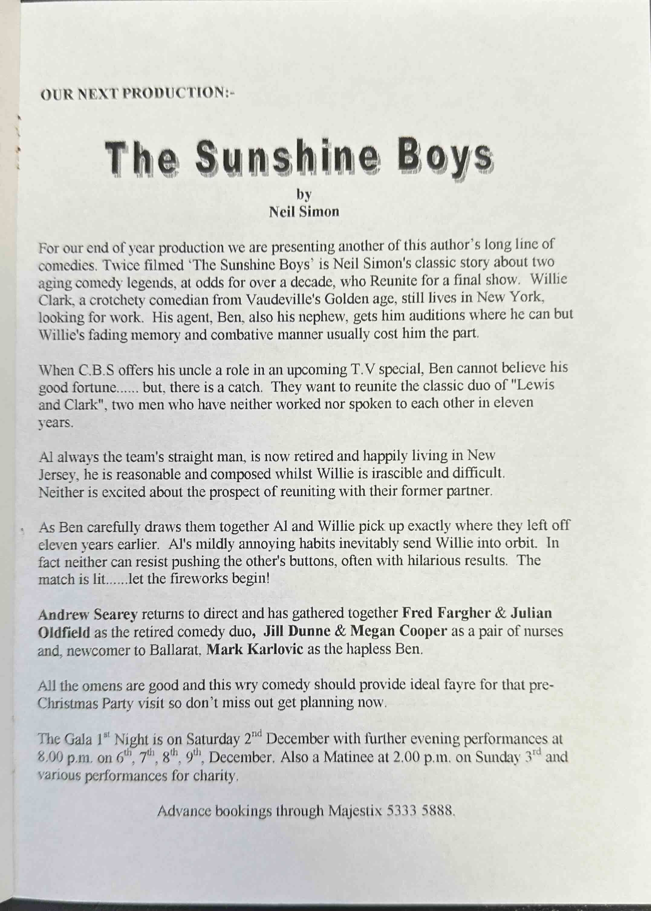 On his retirement, in 1992, he sought more and more theatrical activity, settling in Ballarat two years later, and involving himself deeply in both amateur and professional ventures.