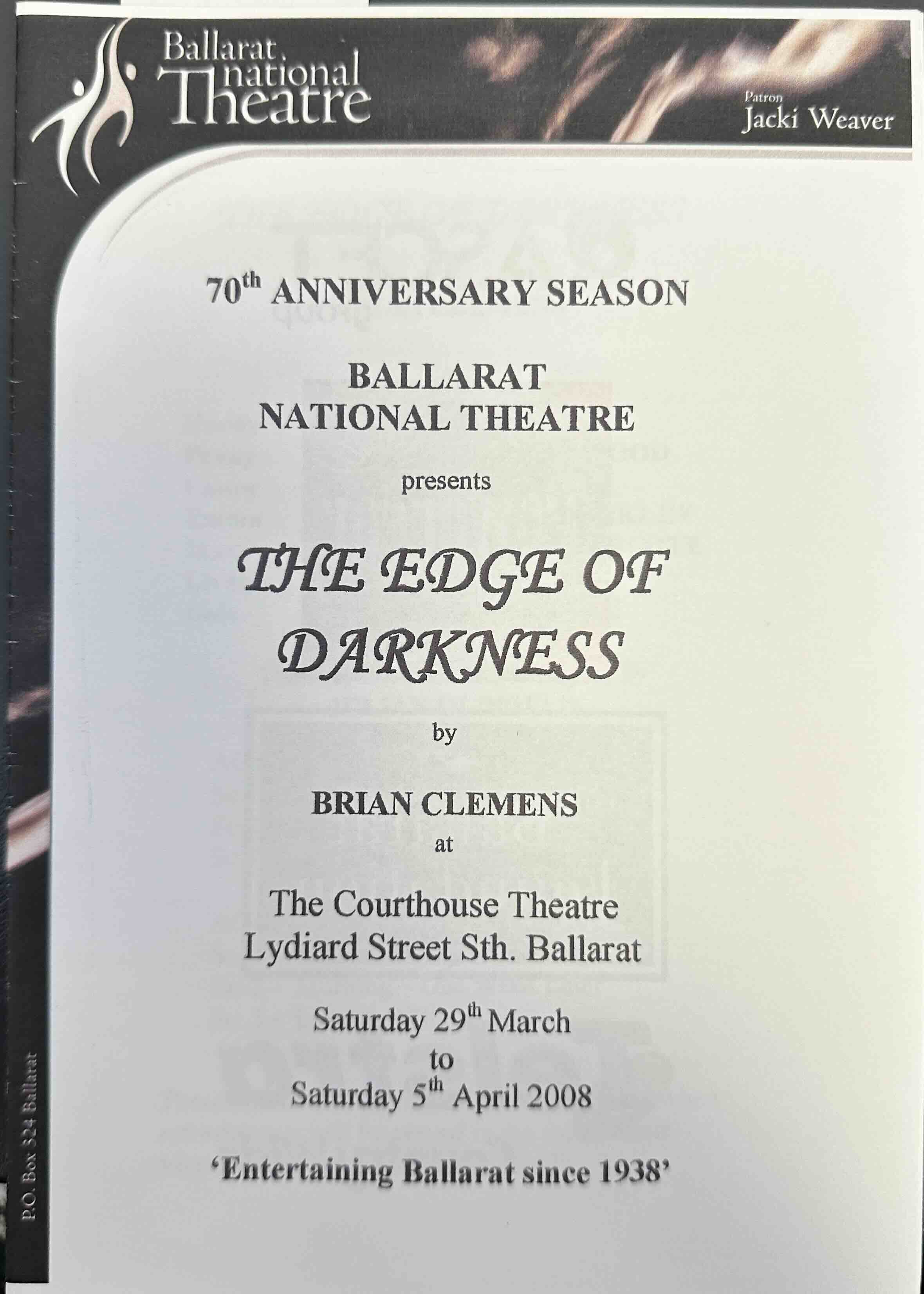 Ballarat National Theatre is this year celebrating 70 years of bringing quality theatre productions to the Ballarat stage. Their current production, The Edge of Darkness, certainly maintains the high standard established over those years.
