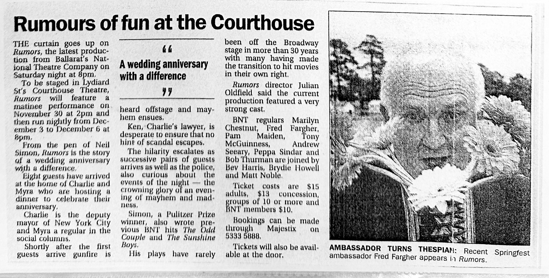 They showcase the talents of well-known actors from both Ballarat and further afield, and introduce some impressive young talent. Amanda Sobey is particularly outstanding as the young girl in Tennessee Williams' This Property Is Condemned.