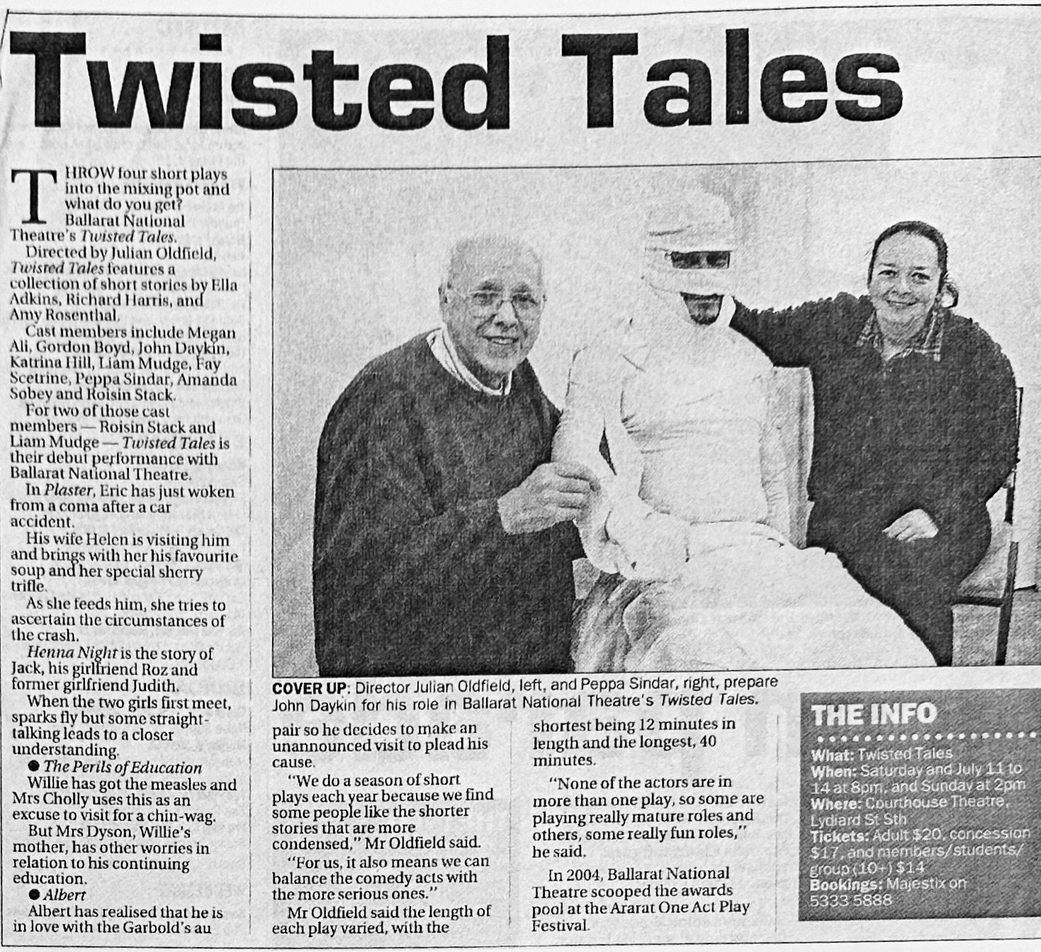 Twisted Tales, the Ballarat National Theatre’s 2007 season of “Shorts”, provides a thoroughly entertaining bill of fare, with four different views of human nature and the quirks of human relationships.