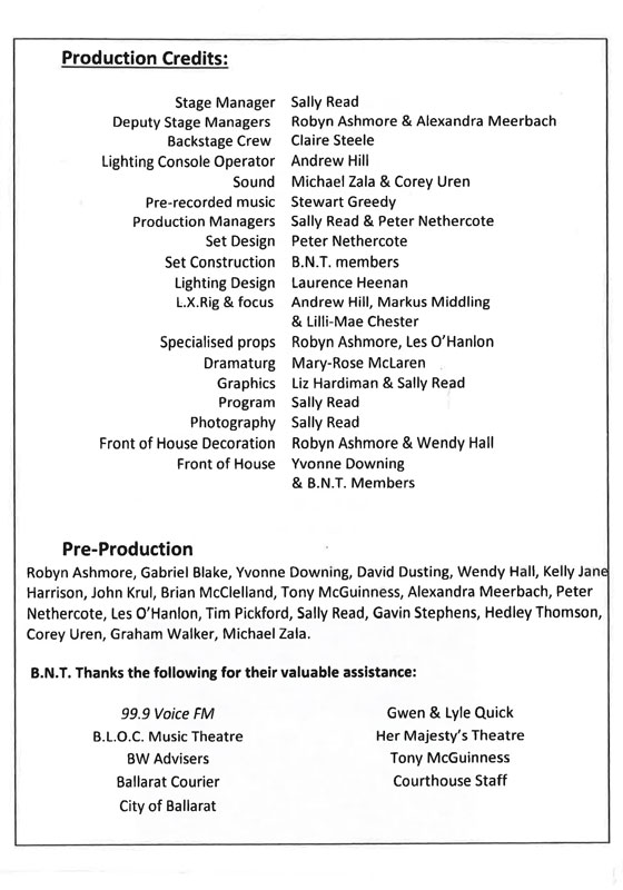 Production ManagersSally Read and Peter Nethercote